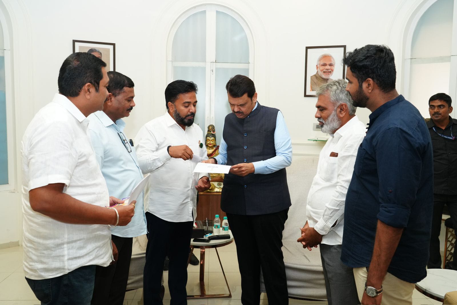 नांदणी येथे दिनांक १ जानेवारी ते ९ जानेवारी २०२५ या कालावधीत होणाऱ्या *पंचकल्याणक प्रतिष्ठा व महामस्तकाभिषेक महोत्सवासाठी आमदार डॉ. राहुल प्रकाश आवाडे साहेब यांनी मुंबई येथील सागर निवासस्थानी महाराष्ट्राचे मुख्यमंत्री मा. देवेंद्रजी फडणवीस साहेब यांची भेट घेतली*. या भेटीत त्यांनी महोत्सवाचे महत्त्व स्पष्ट करत मुख्यमंत्र्यांना या ऐतिहासिक व धार्मिक कार्यक्रमास उपस्थित राहण्यासाठी औपचारिक निमंत्रण दिले.