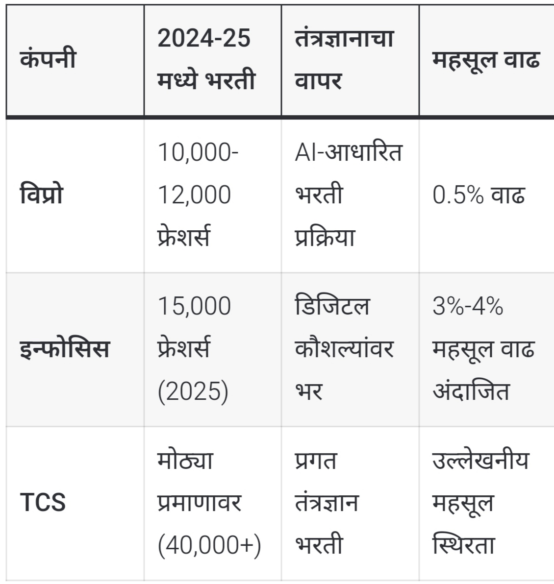 दिग्गज आयटी कंपन्यांमधील भरतीचे तुलनात्मक विश्लेषण – अजिंक्य नोकरी सहायक.