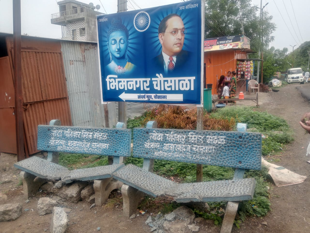 चौसाळा येथिल भीमनगर येथील सिमेंट बाकडयाची अज्ञात समाज कंटकाने केली तोडफोड