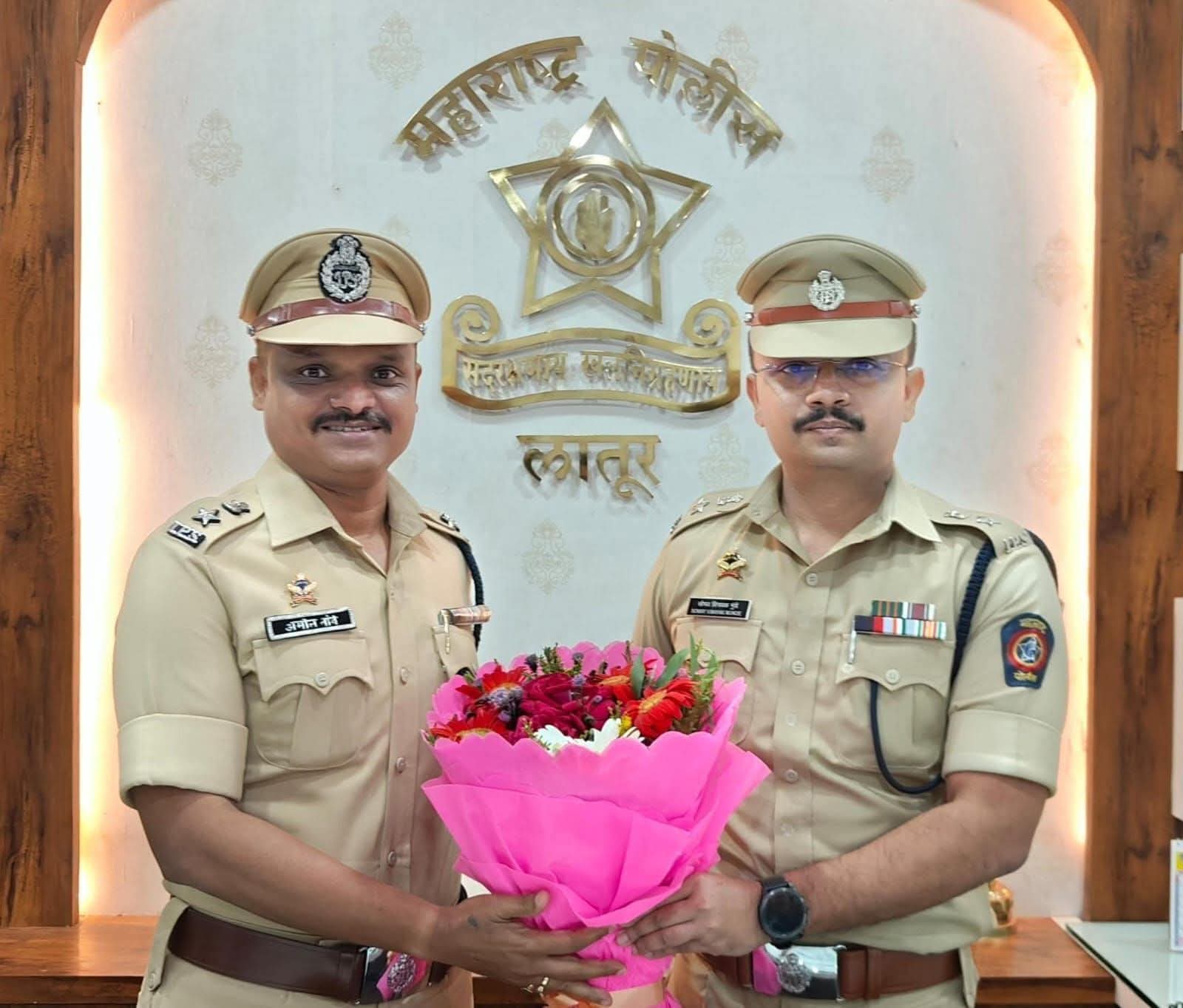लातूर जिल्ह्याचे नवे पोलीस अधीक्षक अमोल तांबे यांनी सोमवारी आपला पदभार स्वीकारला, नव्या पोलीस अधीक्षकांचे पोलीस प्रशासनाकडून स्वागत करण्यात आले, मावळते पोलीस अधीक्षक सोमय मुंडे यांनी जिल्ह्याचे नूतन पोलीस अधीक्षक अमूल तांबे यांचे पुष्पगुच्छ देवुन स्वागत करीत पदभार सोपविला, मावळते पोलीस अधीक्षक सोमय मुंडे यांची पुणे येथे बदली झाली आहे, लातूर जिल्ह्यात खूप समाधानकारक काम करता आले,