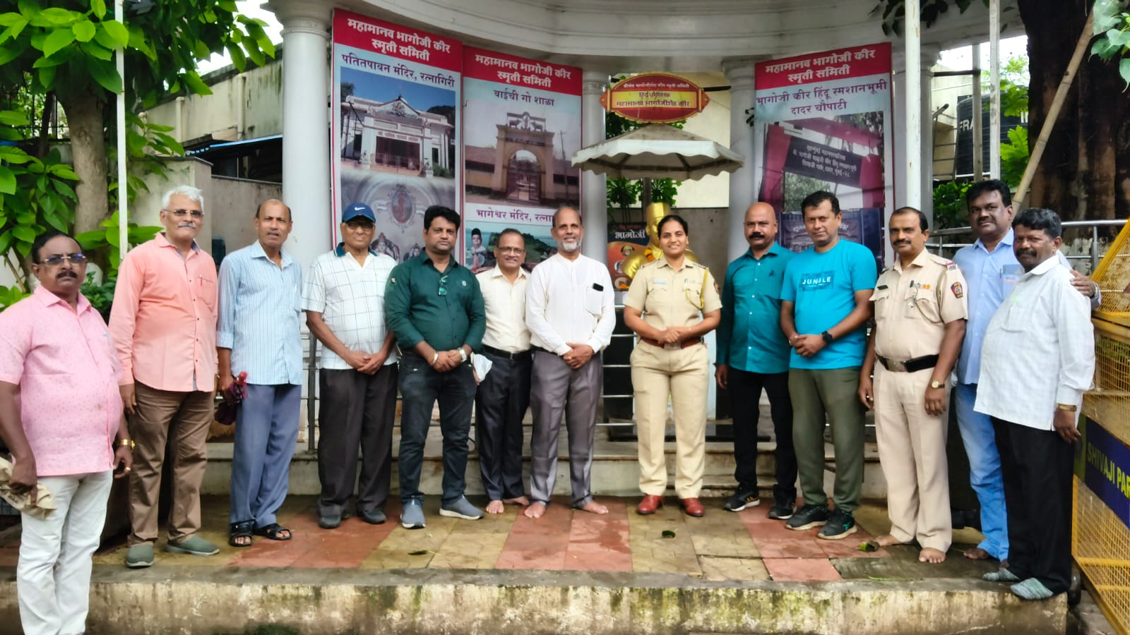 हिंदू धर्मरक्षक श्रीमान भागोजीशेठ कीर स्मृती समिती जय भागोजी, जय भागेश्वर वंदनीय, दानशूर श्रीमान भागोजीशेठ कीर स्मृतीस्थळ, दादर चौपाटी येथील दुरावस्थे संदर्भात समितीच्यावतीने आज गुरुवार दिनांक ३/७/२०२५ रोजी वरिष्ठ पोलीस निरीक्षक, शिवाजी पार्क पोलीस ठाणे, दादर (पश्चिम) यांच्या भेटीचे नियोजन करण्यात आले होते.परंतु ते रजेवर असल्याने इन्चार्ज स्वप्नाली देवकाते मॅडम यांना निवेदन देण्यात आले.त्यांना भागोजींचे कर्तुत्व व दार्तुत्व आणि स्मृतीस्थळ येथील दुरवस्था कथन करण्यात आली.