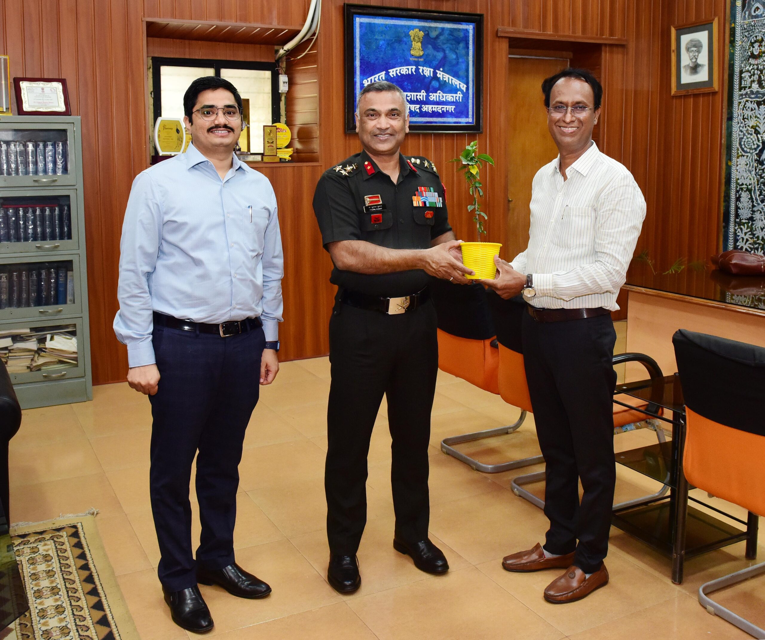 उपस्थित होते. यावेळी डॉ. शिंदे यांनी ब्रिगेडियर पी सुनील कुमार यांना छावणी परिषद भिंगार मध्ये करत असलेल्या कार्याची माहिती देऊन छावणी परिषदेच्या कामाचे कौतुक केले.