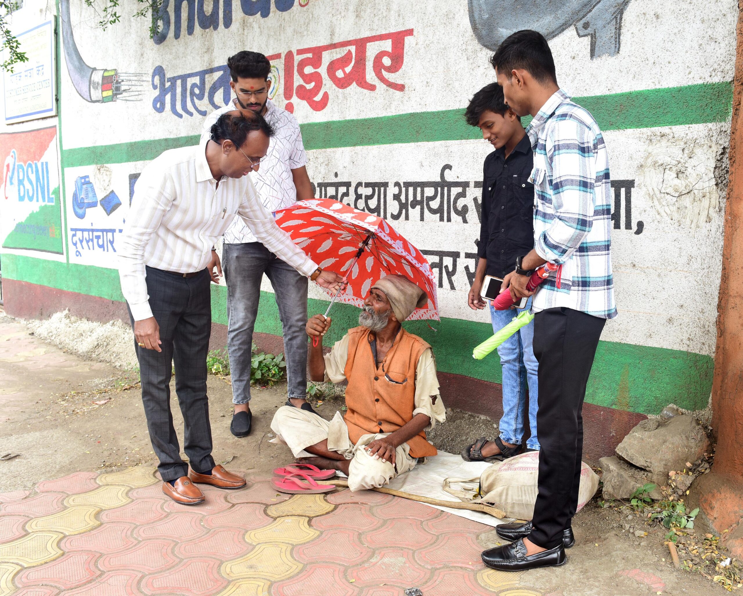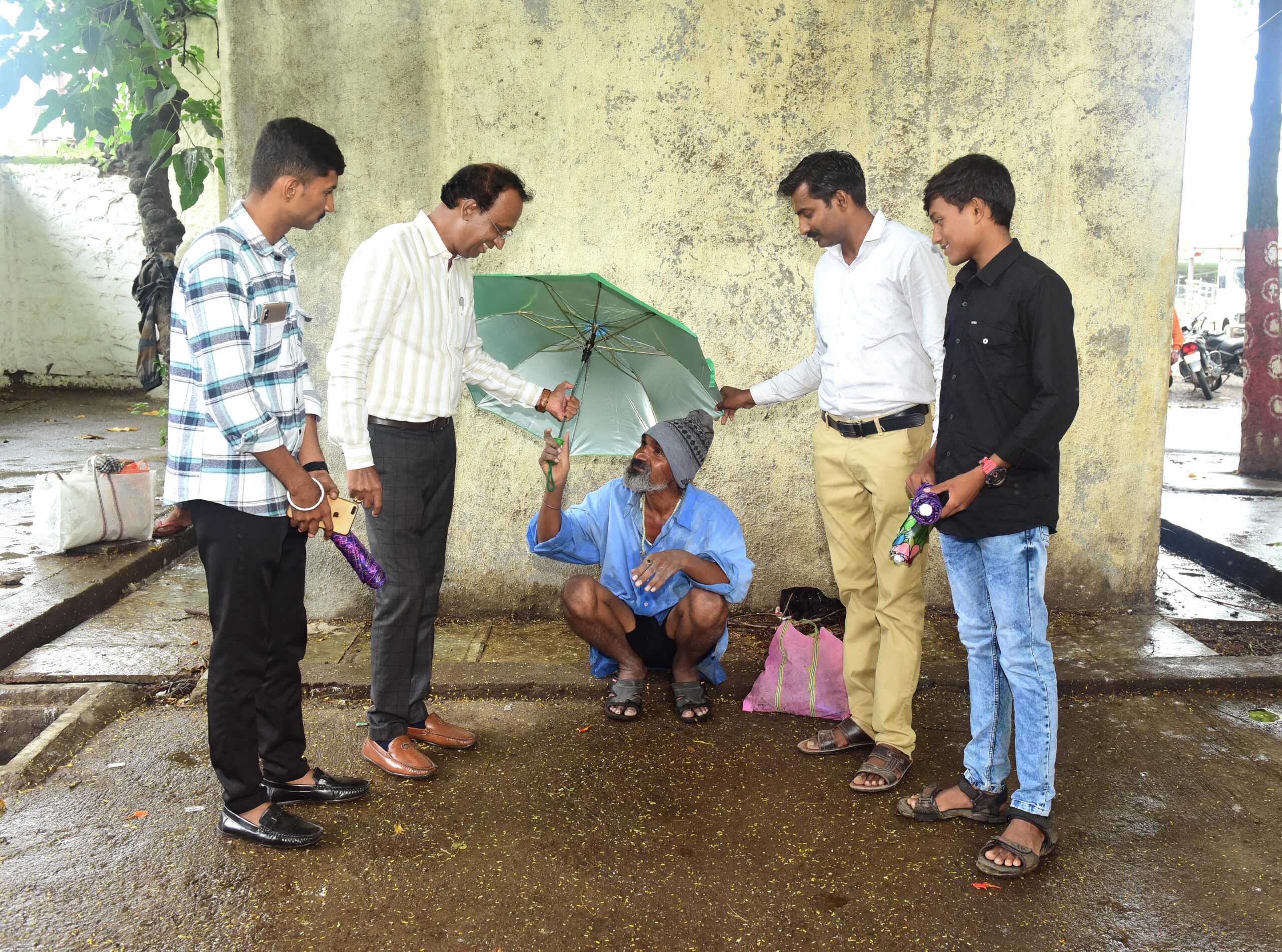 रस्त्यावर राहणाऱ्या गरिबांना पावसापासून संरक्षणासाठी छत्र्या भेट