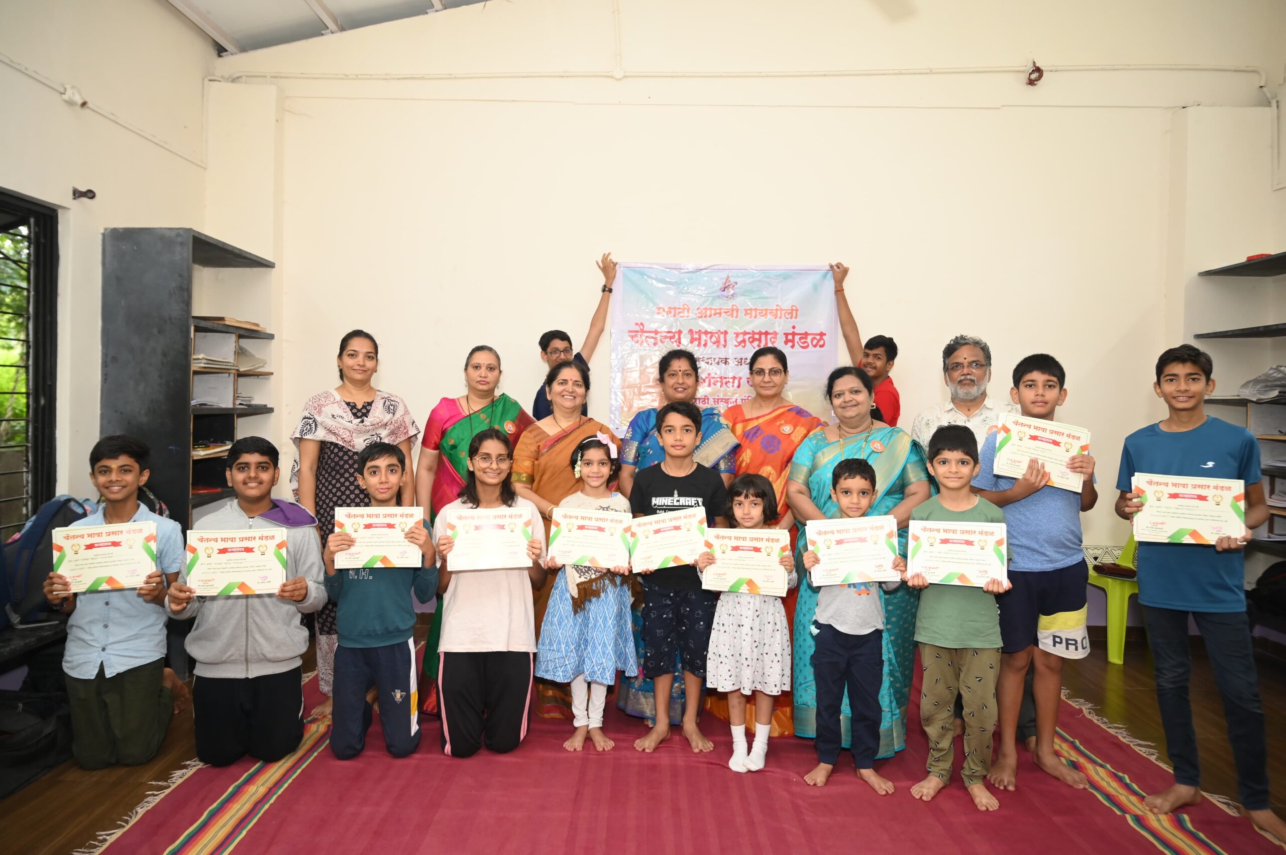 आनंदक्षण ही संस्था मुलांना हसत खेळत ज्ञान संवर्धन करण्याचे काम अनेक वर्षे करत आहे.या संस्थेच्या संचालिका व त्यांच्या टीममधील सर्व सहाय्यक वर्गाने तिथे ज्ञानदानाचे काम कसे चालते हे सांगितले ,दाखवले.एकूण १९० मुलांनी कथाकथन स्पर्धेत,संतांच्या गोष्टी या विषयावर कथा कथन करणे,तसेच संतांचे चरित्र स्वतःचे अक्षरात लिहून आणणे म्हणजेच मराठी हस्ताक्षर स्पर्धेत भाग घेतला होता.त्या मुलांना चैतन्य भाषा प्रसार मंडळातर्फे आज प्रशस्तिपत्रके देण्यात आली, खाऊ देण्यात आला, तसेच आनंदक्षणच्या संचालिका सौ.अमरजा जोशी यांनी हा जो स्तुत्य उपक्रम राबवला आहे त्यासाठी त्यांना एक सन्मानचिन्ह व गौरवपत्र चैतन्य भाषा प्रसार मंडळच्या संस्थापिका सौ.अनिता जोशी यांचे हस्ते प्रदान करण्यात आले.त्यावेळी सौ.रेवती रायरीकर,सौ.अवंती बायस,सौ.मुग्धा पत्की,कुमुदिनी बिल्ला तसेच श्री.मुकुंद उत्पात जातीने हजर होते. मा.देवेंद्र फडणवीस ( मुख्यमंत्री) व मा.अजितदादा पवार( उपमुख्यमंत्री)यांच्या वाढदिवसाचे औचित्य साधून हा कार्यक्रम पार पडला.