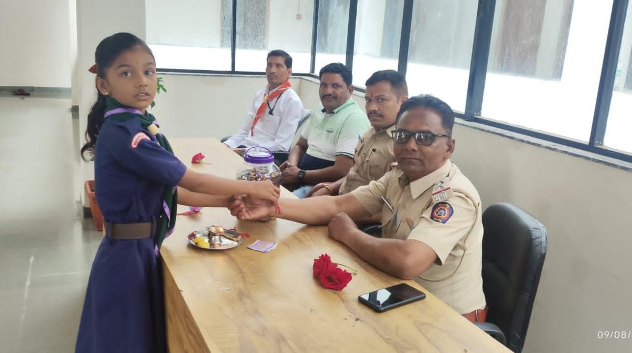 पोलिस बांधवांना राखी बांधून रक्षा बंधन केला साजरा.