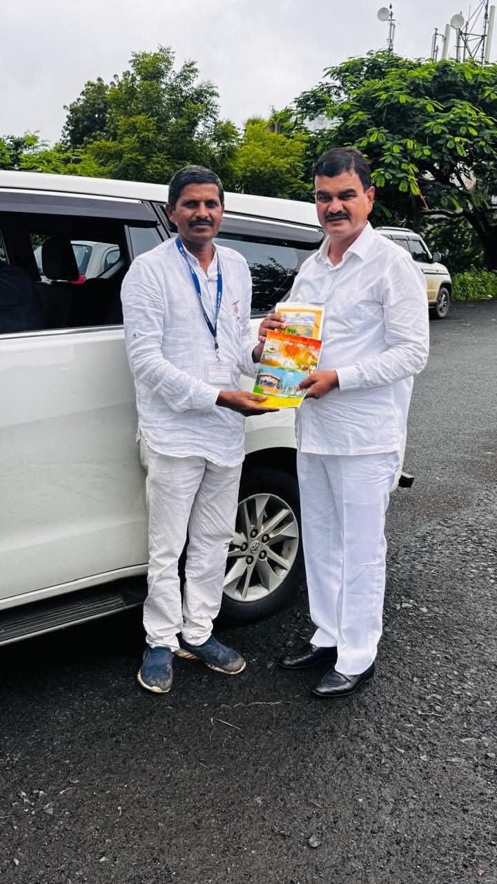 कृषिमंत्री मा.दत्तात्रय भरणे मामा यांना शेतकऱ्यांच्या विविध मागण्याचे निवेदन देताना कृषीभूषण :-भगवानभाई इंगोले, जिल्हाअध्यक्ष किसान ब्रिगेड नांदेड* .* शेतकऱ्यांचा खर्च कमी करुन शेतकऱ्यांच्या उत्पादनामध्ये वाढ कशी होईल यासाठी शेतकऱ्यां विविध मागण्याचे निवेदन देण्यात आले. पीक विमा नुकसान भरपाईत ,अतिवृष्टी, पूरस्थिती ,दुष्काळग्रस्त परिस्थिती, यामध्ये पण पिकविमा लागू करावा , पिकांचे प्राण्यापासून संरक्षण करण्यासाठी फॉरेस्ट वनविभागाला सांगून वानर, डुक्कर, यांना पिंजऱ्यात पकडून जंगलामध्ये सोडणे, पशु, डुक्कर ,वानरा मुळे होणाऱ्या शेती पिकाच्या नुकसानीचा त्वरित पंचनामा करून नुकसान भरपाई वाढवुन देणे, तार कुंपणासाठी अनुदान देने , जैविक कुंपणासाठी फळबाग योजनेमध्ये करवंद पिकांचा समावेश करणे, रासायनिक खतांच्या अति विषारी औषधांच्या अतिवापरामुळे जमीन नापीक होत आहे निसर्ग पर्यावरणाचे, शेतकऱ्यांचे ग्राहकांचे आरोग्य धोक्यात येत आहे आरोग्याच्या समस्या दिवसें दिवस वाढत आहे कॅन्सर, शुगर ,बीपी धब्लड प्रेशर,मोटपा सारखे असाध्य आजार वाढत आहेत यासाठी नैसर्गिक सेंद्रिय शेतीला प्रोत्साहन देण्यासाठी नैसर्गिक सेंद्रिय शेतीमधील कामे मनरेगा अंतर्गत करणे, बरू, ढेंच्या हिरवळीचे खत , रॉक फॉस्फेट, भूसुधारक जिप्सम हे अनुदान स्वरूपामध्ये शेतकऱ्यांना उपलब्ध करून देणे यावरचा जीएसटी कमी करणे हिरवळीच्या खताचे बरु, डेंच्या यांचे बिजउत्पादन करण्यासाठी शेतकरी गटांना अनुदान देने , देशी गौवंश वाढण्यासाठी मध्यप्रदेश छत्तीसगड गुजरात राज्य प्रमाणे देशी गाय सांभाळणाऱ्या शेतकऱ्यांना अनुदान द्यावे , मागच्या २०२३/ २०२४/वर्षी पारदर्शीपणे लकी ड्रॉ पद्धतीने परदेश दौऱ्यासाठी निवड झालेल्या शेतकऱ्यांची यादी रद्द न करता त्यांना यावर्षी निवड झालेल्या शेतकऱ्यांसोबत परदेश दौऱ्यासाठी पाठवणे इत्यादी मागण्याचे निवेदन दिले. शाश्वत योगिक शेती बदल माहीत दीली, शेतकऱ्यांना बाजार भावांची, उत्पादनांची शाश्वती नसल्यामुळे शेतकरी तणावग्रस्त जीवन जगत आहे मजबूरन व्यसनाच्या आहारी जात आहे , शेतकऱ्यांनी सकारात्मक जीवनशैली अवलंबून पशु पक्षी प्रकृती पर्यावरण यांचे संरक्षण करून प्रकृती पती परमात्म्याच्या आठवणी मध्ये राहून योगीक शेती केली तर शेतकऱ्यांचे मनोबल वाढते पाच तत्वांचे प्रकृतींचे शेतकऱ्यांना सहकार्य मिळते संघटन वाढवण्यासाठी मूल्यांची धारणा होते यासाठी शेतकऱ्यांनी शाश्वत योगिक शेतीचे प्रशिक्षण घेऊन शाश्वत योगिक शेतीचा अवलंब करावा
