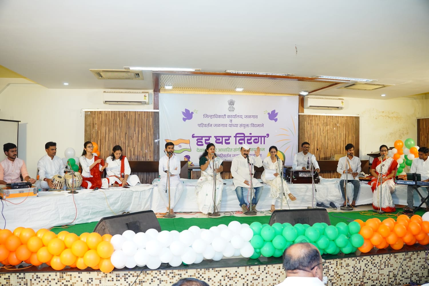 जळगाव दि. 14 स्वातंत्र्य दिनाच्या पूर्वसंध्येला जिल्हाधिकारी कार्यालय परिसर देशभक्तीच्या स्वरांनी दुमदुमून गेला. जिल्हाधिकारी कार्यालय आणि परिवर्तनच्या वतीने आयोजित संगीतमय सादरीकरणात राष्ट्रप्रेमाचा अनोखा आविष्कार रंगला.
