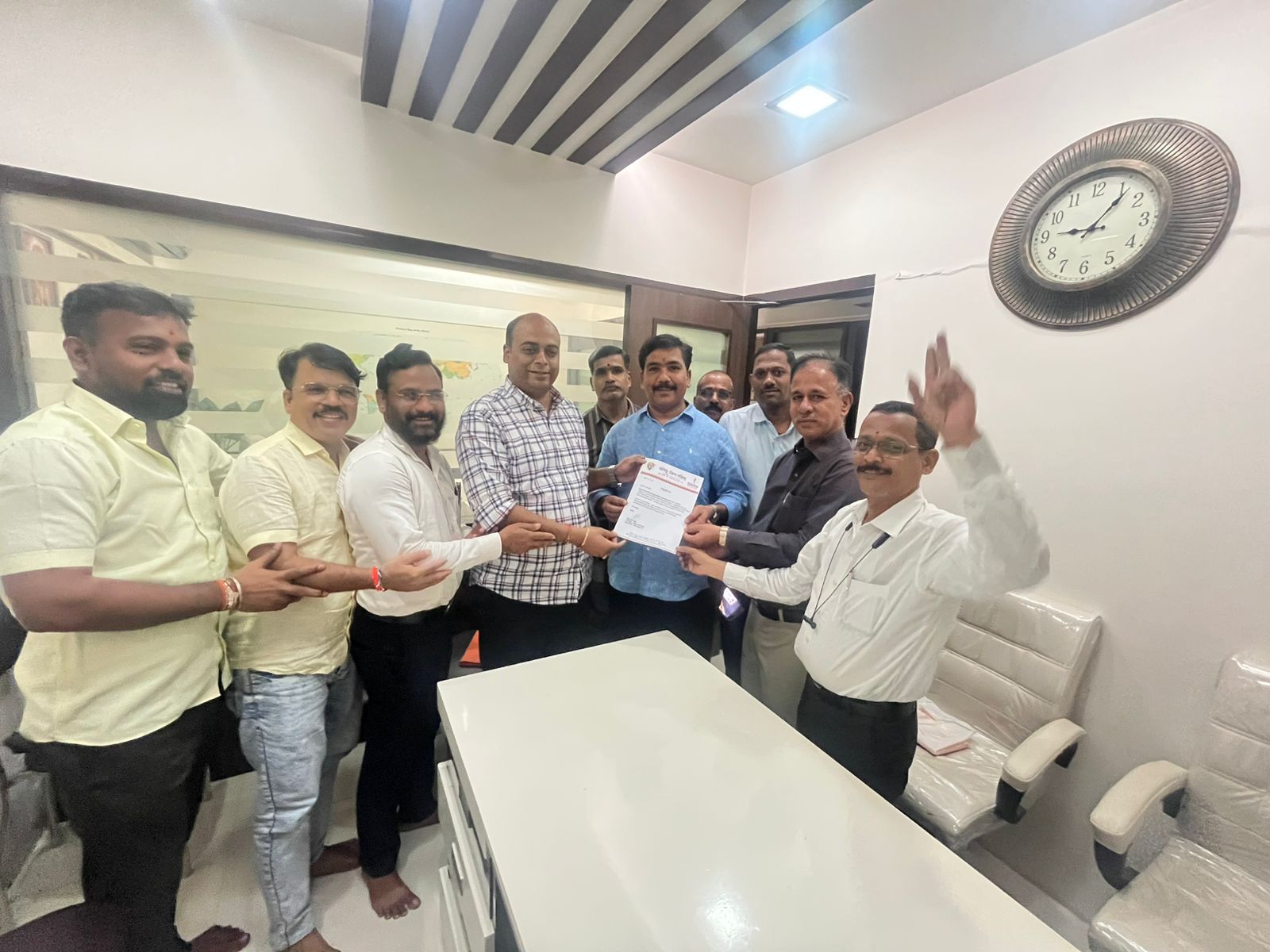पदी निवड झाल्याबद्दल मनःपूर्वक अभिनंदन व पुढील वाटचालीस हार्दिक शुभेच्छा देण्यात आल्या सोबत सर्व पदाधिकारी उपस्थित होते