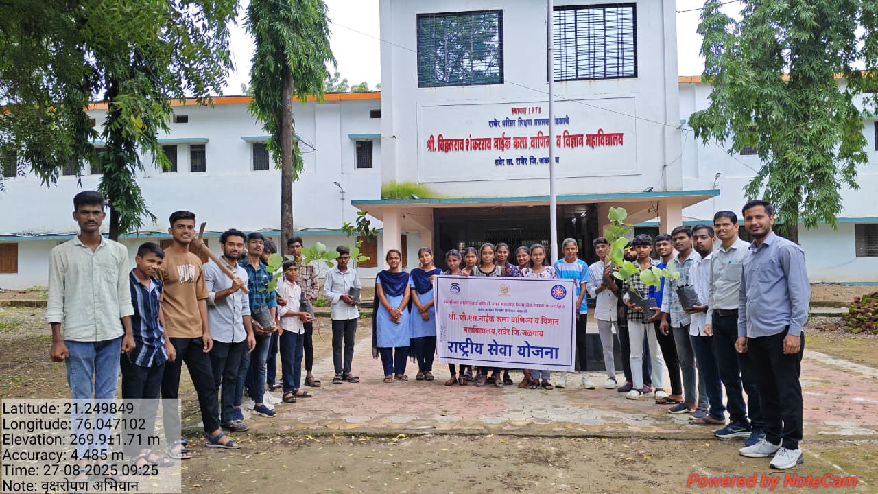 दिनांक 27/08/25 रोजी महाराष्ट्र शासनाच्या वृक्षारोपण अभियान अंतर्गत श्री. व्ही.एस. नाईक महाविद्यालयामध्ये वृक्षारोपण कार्यक्रम उत्साहात संपन्न झाला. या कार्यक्रमाचे आयोजन महाविद्यालयाच्या प्राचार्य डॉ.अनिल पाटील यांच्या मार्गदर्शनाखाली करण्यात आले.