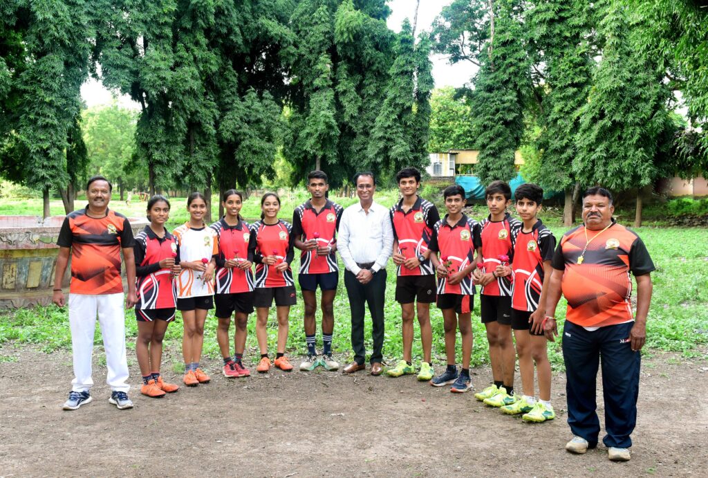 जिल्हास्तरीय अॅथलेटिक स्पर्धेसाठी निवड झालेल्या विद्यार्थ्यांना शुभेच्छा देताना स्नेहबंध सोशल फौंडेशनचे संस्थापक अध्यक्ष डॉ. उद्धव शिंदे.