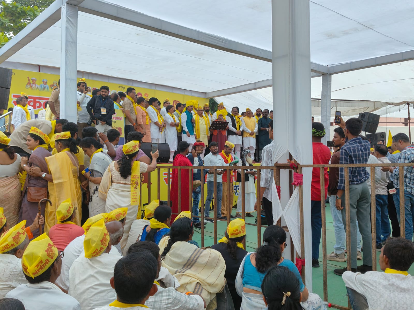 २ सप्टेंबर रोजी राज्य सरकारने काढलेल्या मराठा समाजाला आरक्षण देण्यासाठी ओबीसीत घुसखोरी करणारा काढलेला हा काळा जीआर सरकारने रद्द करावा, या मागणीसाठी नागपूर मध्ये सकल ओबीसी विमुक्त भटक्या जाती जमाती समाजाच्या वतीने आज (ता १०) नागपुरातील यशवंत स्टेडियम येथून हा मोर्चा काढण्यात आला. संविधान चौकात मोर्चा पोहोचून तेथे जाहीरसभेत रूपांतर करण्यात आले.