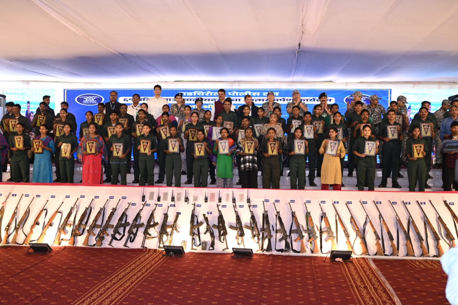 इतिहास बदलणारे आत्मसमर्पण एकूण ६१ माओवादी सदस्यांनी ५४ अग्निशस्त्रांसह आत्मसमर्पण केले. या सर्वांनी माओवादी गणवेशात मुख्यमंत्री देवेंद्र फडणवीस यांच्या समोर संविधानाची प्रत स्वीकारत मुख्य प्रवाहात प्रवेश केला. या वेळी पोलिस महासंचालक रश्मि शुक्ला, गुप्तवार्ता आयुक्त शिरीष जैन, विशेष कृतीचे एडीजी डॉ. छेरिंग दोरजे, आयजी संदीप पाटील, जिल्हाधिकारी अविश्यंत पंडा, आमदार डॉ. मिलिंद नरोटे, एसपी निलोत्पल आदी मान्यवर उपस्थित होते.