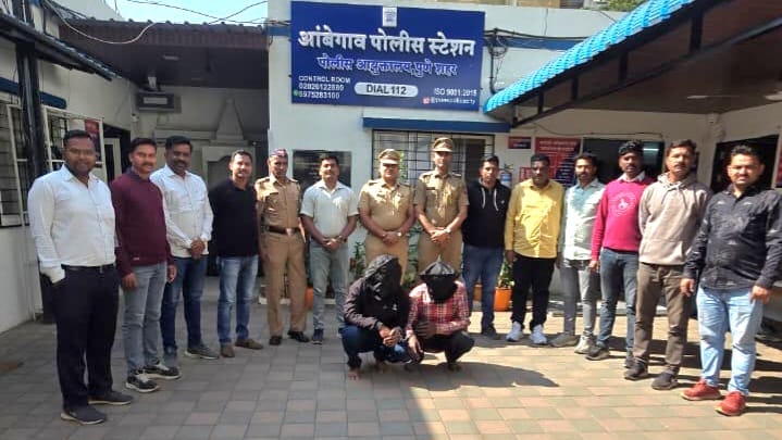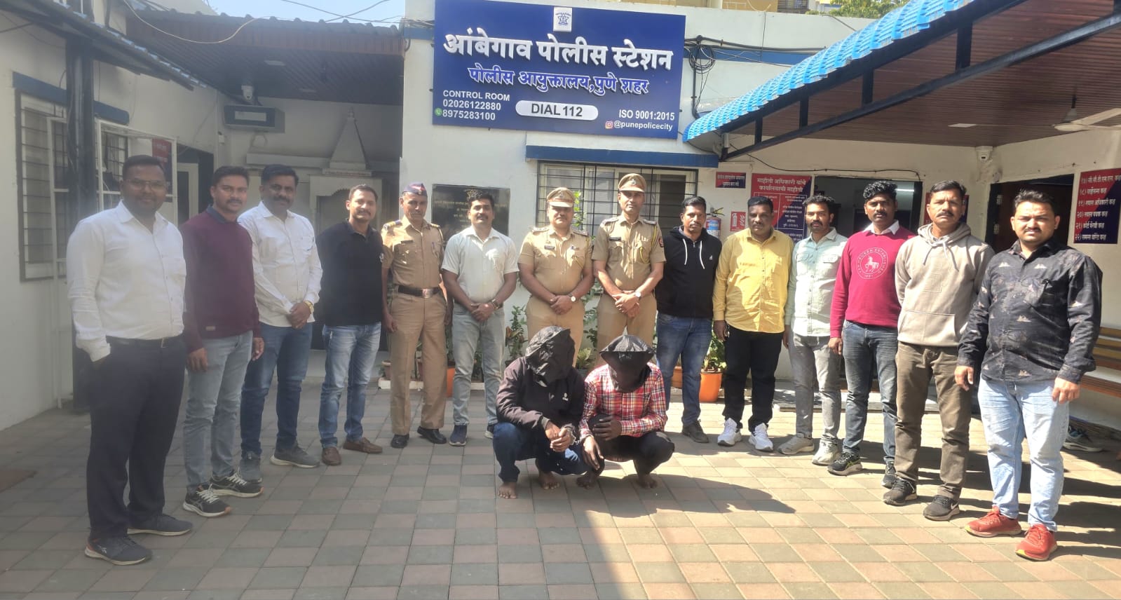 आंबेगाव पोलीस ठाण्याच्या हद्दीमध्ये नात्यातील मुलीशी असलेल्या प्रेम प्रकरणाच्या वादांतून तरुणावर धारदार शस्त्राने वार करून खून केल्याची घटना घडली होती. या प्रकरणी आंबेगाव पोलीस ठाण्यात दोघाविरोधात गुन्हा दाखल करण्यात आला होता. यामध्ये जावेद ख्वाजामियां पठाण (वय 34) रा. ख्वाजानगर शनी मंदिराजवळ भोकर जि.नांदेड) असे खून झालेल्या तरुणाचे नाव आहे. याप्रकरणी मयत जावेदचा भाऊ रौफ उस्मान शेख (वय 35) याने आंबेगाव पोलीस ठाण्यात फिर्याद दाखल केली होती. याबाबत संदीप रंगराव भुरके (वय 25) त्याच्यासह एका साथीदारांच्या विरोधांत गुन्हा दाखल करण्यात आला होता. पोलीस सूत्रांकडून मिळालेल्या माहितीवरून जावेद हा पुण्यात एका ठिकाणी काम करत होता त्याचवेळी आरोपी संदीप भुरके यांच्या नात्यातील एका मुलीशी त्याची ओळख झाली होती. आणि ओळखीचे रूपांतर हे प्रेम संबंधात झाले, मात्र या प्रेमप्रकरणाला आरोपी संदीप भुरके याचा चांगलाच विरोध होता. वारंवार तो प्रेमसंबंध तोड असे जावेदला सांगत होता, आणि याच वादांतून संदीप भुरके यांनी आपल्या साथीदारासमवेत जावेदवर धारदार शस्त्राने वार केले यात जावेद पठाण हा गंभीर जखमी झाला होता. त्याच्यावर पुणे येथील ससून रुग्णालयात उपचार सुरू होते. उपचारांदरम्यान जावेदचा मृत्यू झाला. या घटनेचा तपास आंबेगाव पोलीस करत होते. याबाबत आंबेगाव पोलिसांना खून करणारे आरोपी हे मूळचे नांदेड जिल्ह्यातील असल्याची माहिती वरिष्ठ पोलीस निरीक्षक शरद झिने यांना मिळाली होती. त्या अनुषंगाने त्यांनी आपल्या पोलीस ठाणेकडील गुन्हे प्रकटीकरण शाखेच्या पोलिसांना तपासाच्या दृष्टिकोनांतून सूचना केल्या. याच दरम्यान आंबेगाव पोलिसांच्या पथकांने नांदेडमध्ये जावुन अखेर आरोपींना बेड्या ठोकल्या, यामध्ये आरोपी नामे. संदीप रंगराव भुरके (वय 25) आणि त्याचा साथीदार आरोपी नामे.ओमप्रसाद उर्फ दत्ता गणेश किरकन (वय 20) दोघेही मूळचे नांदेडचे आहेत. सदरची कामगिरी ही पोलिस आयुक्त अमितेशकुमार सहा. पोलीस आयुक्त रंजनकुमार शर्मा अप्पर पोलीस आयुक्त राजेश बनसोडे पोलीस उपायुक्त परिमंडळ-2 मिलिंद मोहिते सहाय्यक पोलीस आयुक्त राहुल आवारे यांच्या मार्गदर्शनाखाली आंबेगाव पोलीस ठाण्याचे वरिष्ठ पोलीस निरीक्षक शरद झिने गुन्हे पोलीस निरीक्षक गजानन चोरमले पोलीस उपनिरीक्षक मोहन कळमकर शैलेंद्र साठे चेतन गोरे हनुमंत पिसाळ निलेश जमदाडे हरीश गायकवाड धनाजी धोत्रे सचिन गाडे प्रमोद भोसले योगेश जगदाळे शिवाजी पाटोळे आदीं पोलिसांनी या कारवाईत सहभाग घेतला.