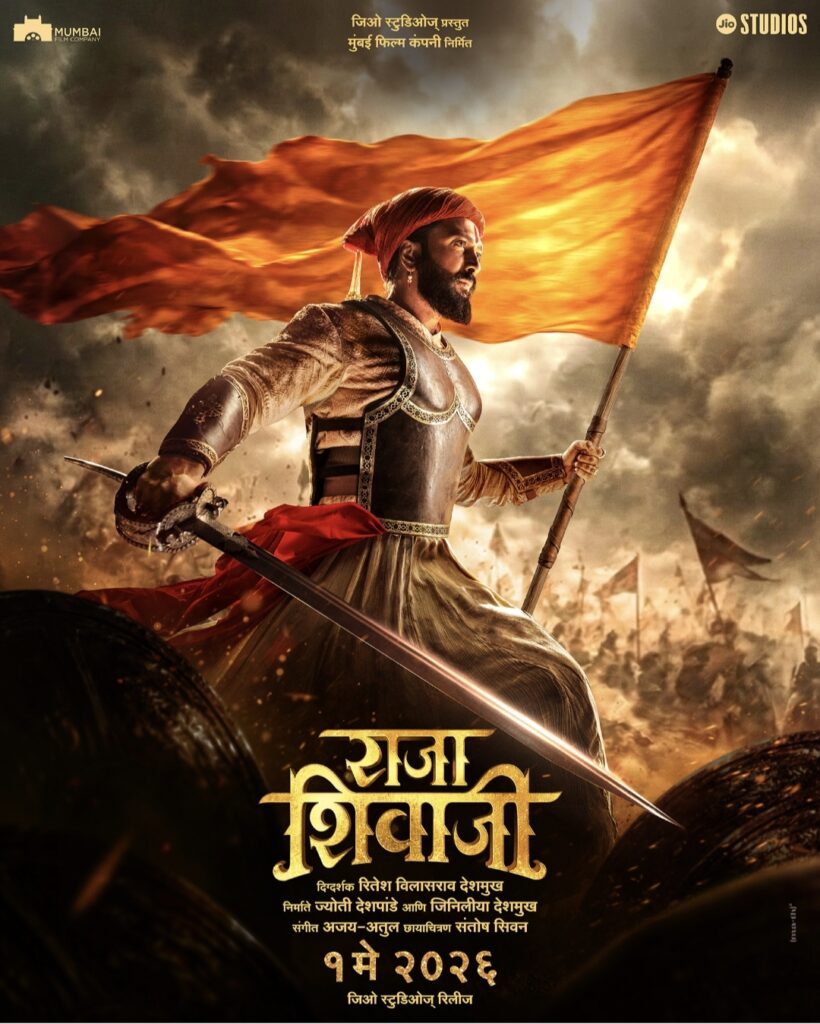 जिओ स्टुडिओज् प्रस्तुत, मुंबई फिल्म कंपनी निर्मित, निर्माते ज्योती देशपांडे आणि जिनिलीया रितेश देशमुख, रितेश विलासराव देशमुख दिग्दर्शित, द्विभाषिक (मराठी आणि हिंदी) चित्रपट ‘राजा शिवाजी’ १ मे २०२६ रोजी म्हणजेच ‘महाराष्ट्र दिना’च्या दिवशी जगभरातील चित्रपट गृहांत प्रदर्शित होणार आहे. यानिमित्ताने शिवरायांच्या पराक्रमाची गाथा अंतरराष्ट्रीय पातळीवर ही विस्तारित होण्यास सज्ज.