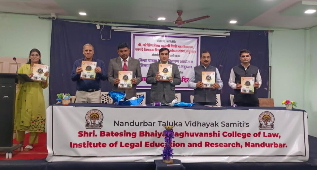नंदुरबार तालुका विधायक समितीचे श्री.बटेसिंग भैय्या रघुवंशी विधी महाविद्यालय, नंदुरबार, जिल्हा विधी सेवा प्राधिकरण, नंदुरबार व जिल्हा ग्राहक तक्रार निवारण आयोग, नंदुरबार’ यांच्या संयुक्त विद्यमाने विधी महाविद्यालयात ‘जागतिक ग्राहक हक्क दिन २०२६ नुकताच आज साजरा करण्यात आला आहे.
