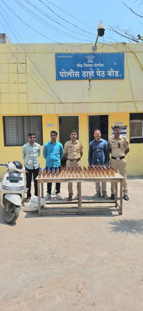 आज दिनांक 25/03/2025 रोजी 11.00 वाजता आरोपी नामे सचिन विठ्ठल वादे वय 38 वर्ष रा. नालवंडी ता. जि. बीड हा त्याचे टी.व्ही.एस. ईलेक्ट्रीक स्कुटी क्र. MH-23-BM-4836 यामध्ये अवैध विनापरवाना बेकायदेशीररीत्या विदेशी दारु विक्री करीता घेवुन जात असल्याची गोपनीय माहिती मिळाल्यावरुन डॉ. बाबासाहेब आंबेडकर पुतळा येथे सापळा रचुन पोलीस ठाणे पेठ बीड चे अंमलदार यांनी कारवाई केली.