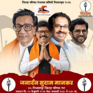 45 निजामपूर जिल्हा परिषद गट शिवसेना उद्धव बाळासाहेब ठाकरे पक्षाचे अधिकृत उमेदवार श्री. जनार्दन सुदाम मानकर January 27, 2026 Read More »