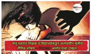 सेलू शहरात शिक्षक व दोन युवकांकडून अल्पवयीन मुलीचे लैंगिक शोषण – POCSO अंतर्गत गुन्हा दाखल October 4, 2025 Read More »